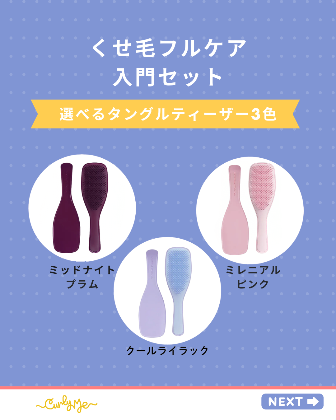 くせ毛に悩むあなたのために、Curly Meの人気スタイリングアイテムとタングルティーザーのブラシを組み合わせた、これさえあれば始められるお得なセットをご用意しました。