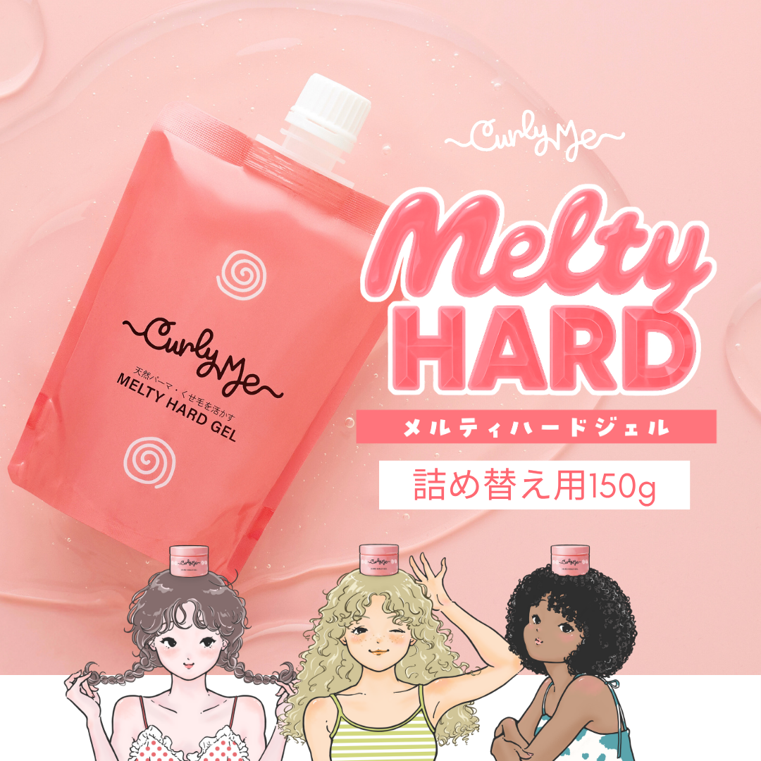 新しいメルティハードは、よりしっかりとした厚い皮膜を作ってカールを守ります。湿気に強く、浮き毛も出にくいです。硬い髪や毛量が多い方、カールが細かい方にも適した処方です。